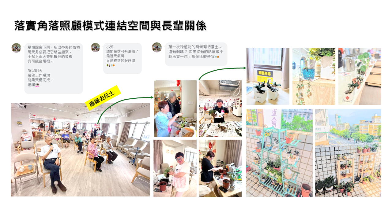 3. 導入認知悠能理念發展角落照顧模式:運用認知悠能WOW-NISA架構蒐集並評估個案生命史及生活經驗,規劃適當角落空間服務,引發個案生活意義與成就感。