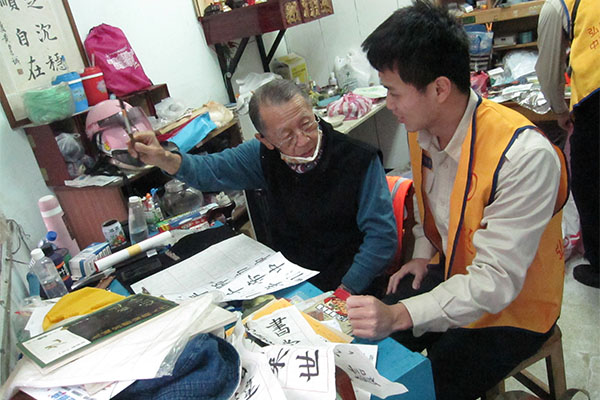 在健康的把關之外,我們也邀請阿公到松年大學上課,或是參與弘道新莊志工站的活動,活絡的社會參與豐富了阿公的生活,過年前,我們也將召集役男志工至阿公家大掃除,和他一起寫書法、唱日文歌,陪伴阿公暖心過寒冬~