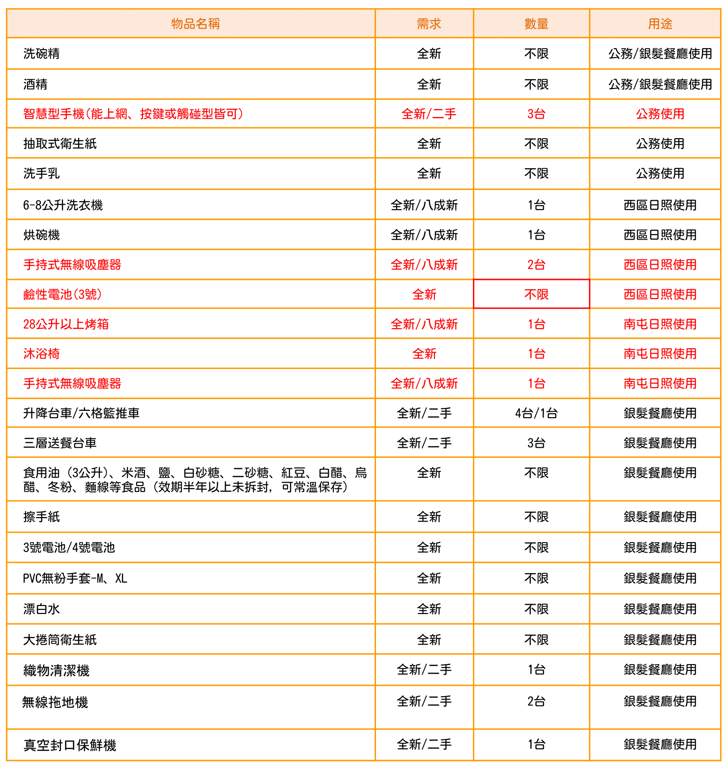 ➜ 非各地區清冊所列的物資:敬請填寫表單https://reurl.cc/jdNxoM,並附上照片圖檔,由專人主動與您聯繫。