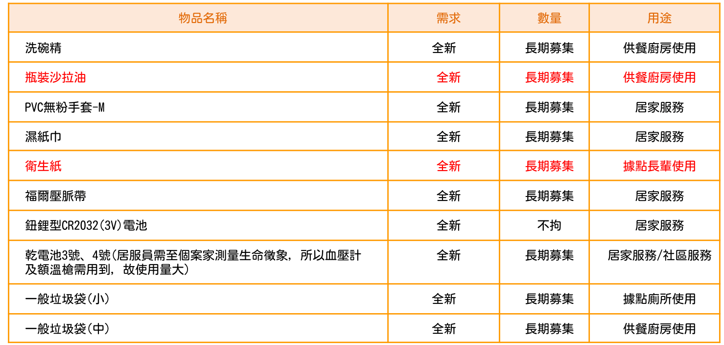 ✓ 關於抵稅:限用於全新物資,並附上購買時的發票(影本或掃描)佐證金額,可由本會開立載金額之捐物收據。