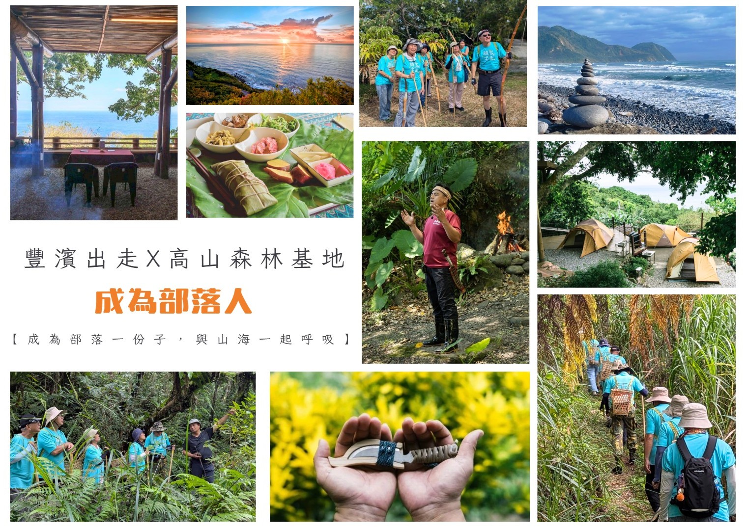 走進花蓮豐濱,一個山海相擁的地方,我們將在這裡展開一段以「成為部落人」為主題的六天五夜生活體驗。由高山森林基地的夥伴帶領,跟著地方的生活節奏,一步一步走進山林、部落與土地的日常。
